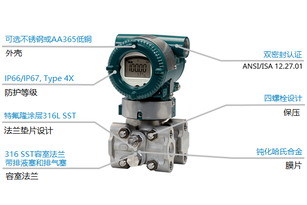 堅(jiān)固耐用的構(gòu)造可以幫助您的工廠減少故障。四螺栓保壓設(shè)計(jì),DPharp數(shù)字傳感器,特氟龍涂層316L不銹鋼法蘭墊圈,ANSI / ISA 12.27.01認(rèn)證雙重密封 - 所有的設(shè)計(jì)特點(diǎn)都為延長(zhǎng)變送器的使用壽命。